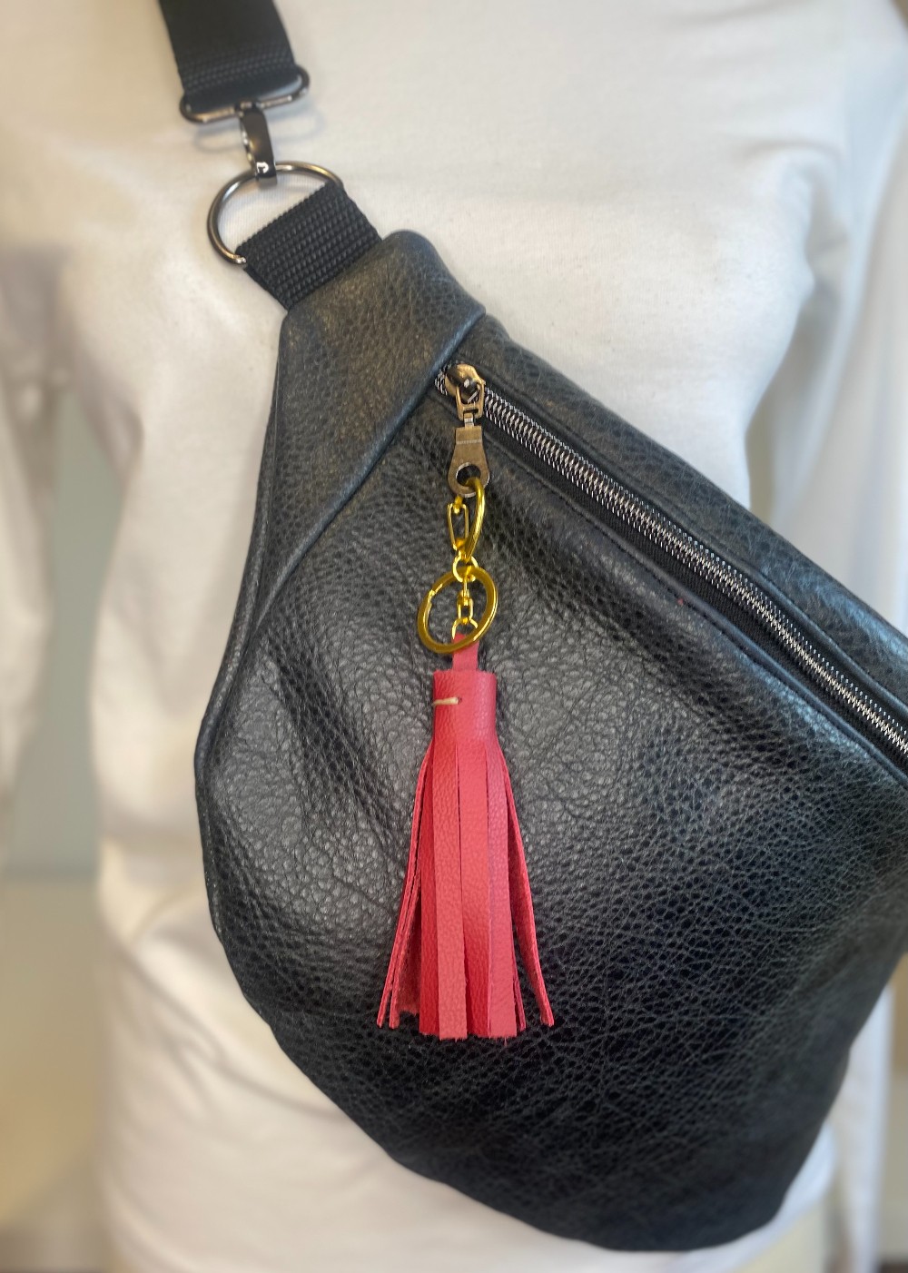 The Tassel can be used as a key chain or hang it on your bag as a bag charm. It's hand crafted from reclaimed leather.