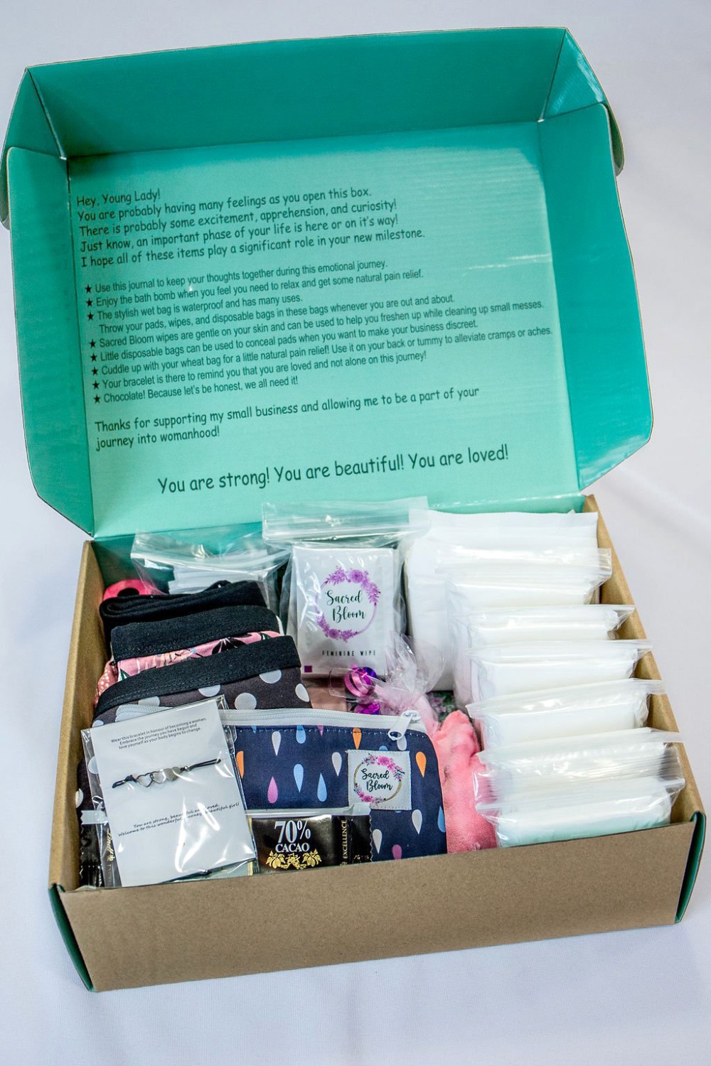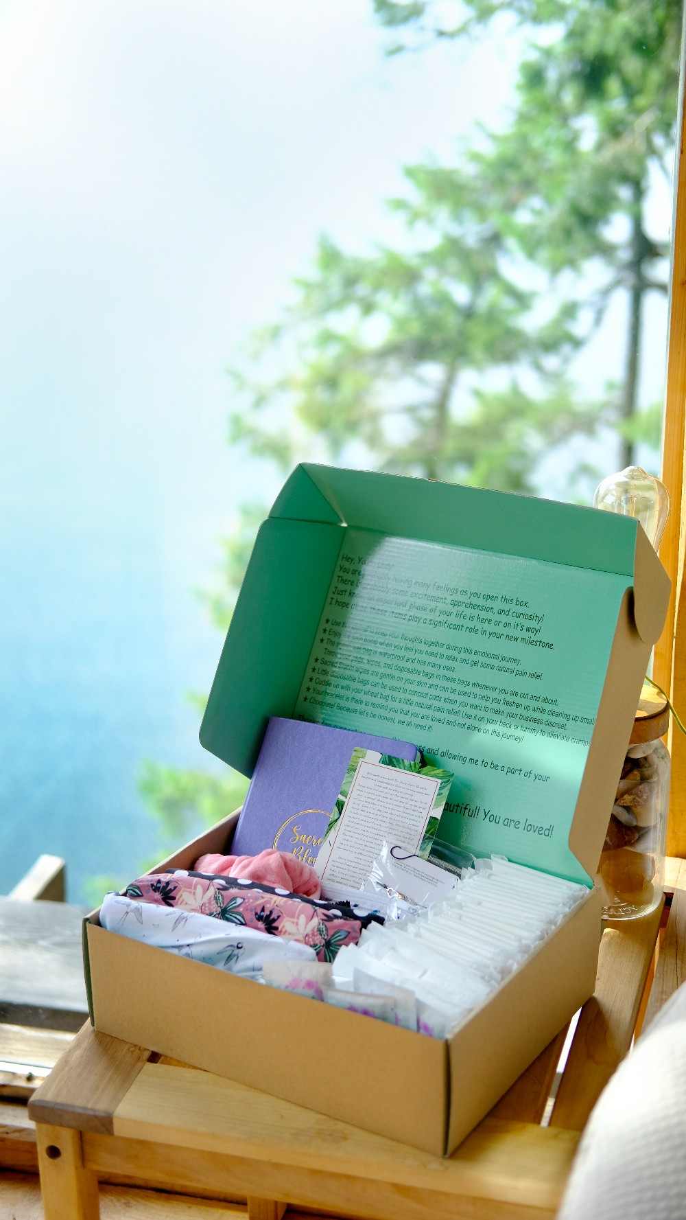 "The Bloom Box" is a first-period kit, created to gently support both you and the teen in your life as they begins their cycle journey. Thoughtfully curated to keep things simple for you and empowering for them, this box brings comfort, care, and confidence to a meaningful milestone.