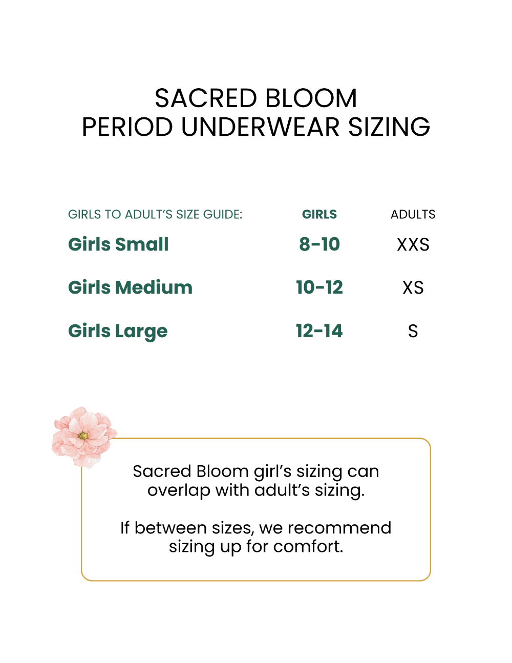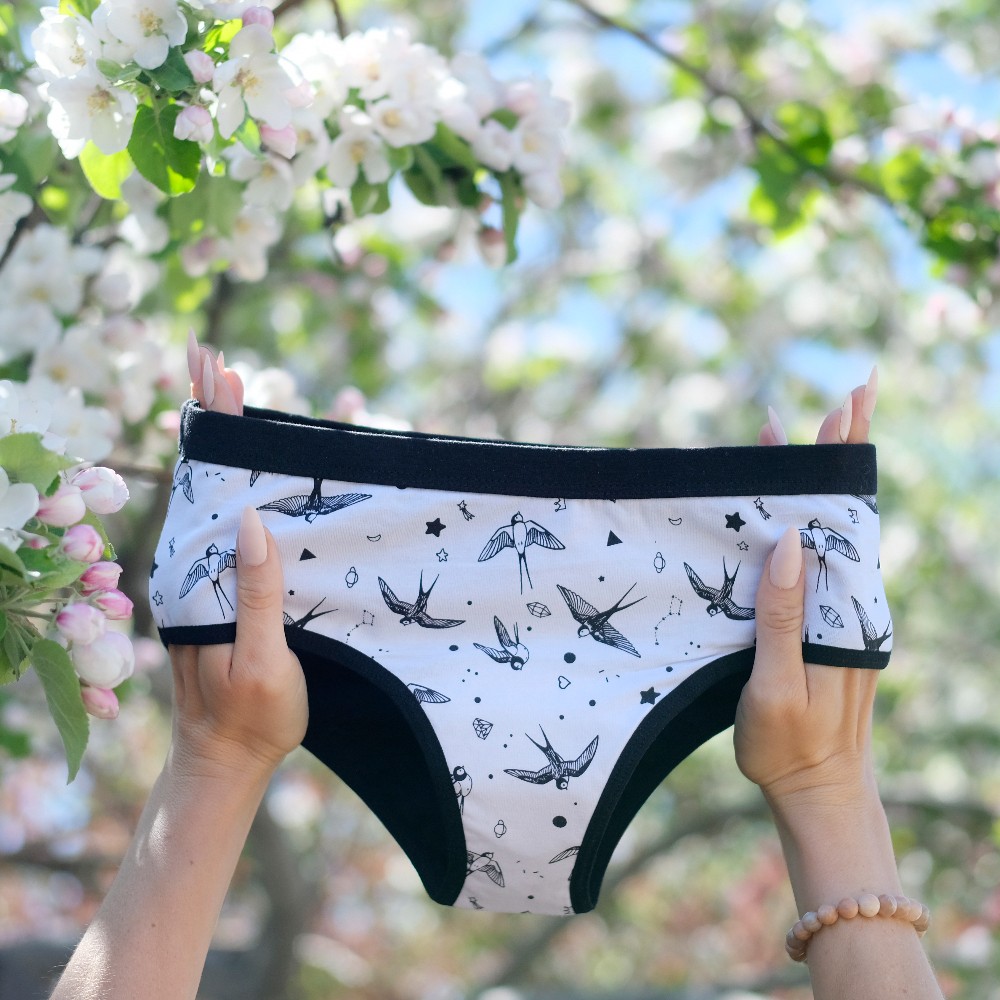 Each box includes 3 pairs of period underwear – Light, Moderate & Heavy Flow. Wear on its own for light to heavy flow, pair with our organic pads, or combine with your preferred period care (cups, discs, tampons, etc.) for extra leak protection.
